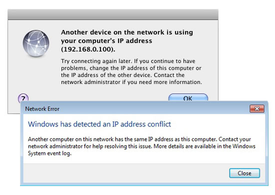 Where the conflict can arise is when a wireless device is out of use for a period of time, usually in sleep mode, and its IP address gets reassigned to a new device. Laptops often behave this way. After going to sleep, the laptop will wake up and try to connect to the previously used IP address that has already been reassigned to another device on the network. An additional complication can be the introduction of smartphones and tablets to the network. iOS devices in particular have a tendency to try and maintain the same IP address after first connection with a network. If that device leaves the network for the day and then returns the next, it may try to force that original IP address when it is now in use by someone else’s laptop, yielding an error.
