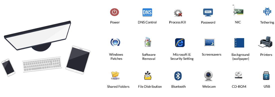 • Enforcement Policy: Manage secure access control using the Sensors and Agent.