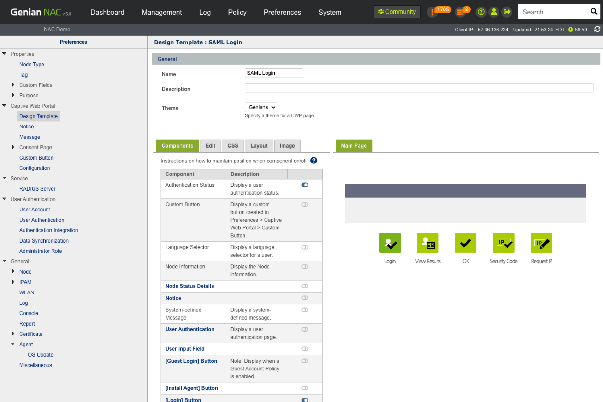 • Captive Web Portal service