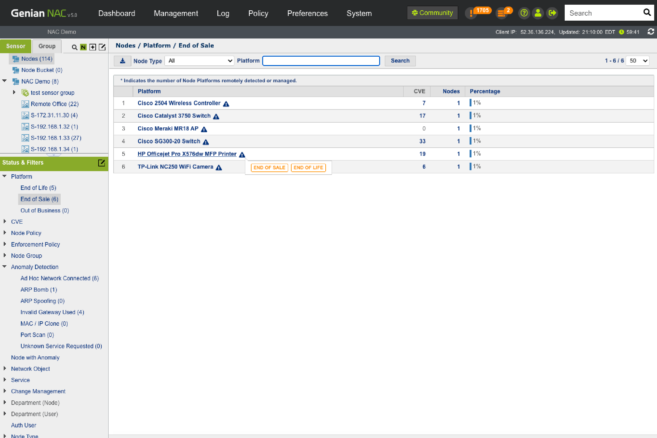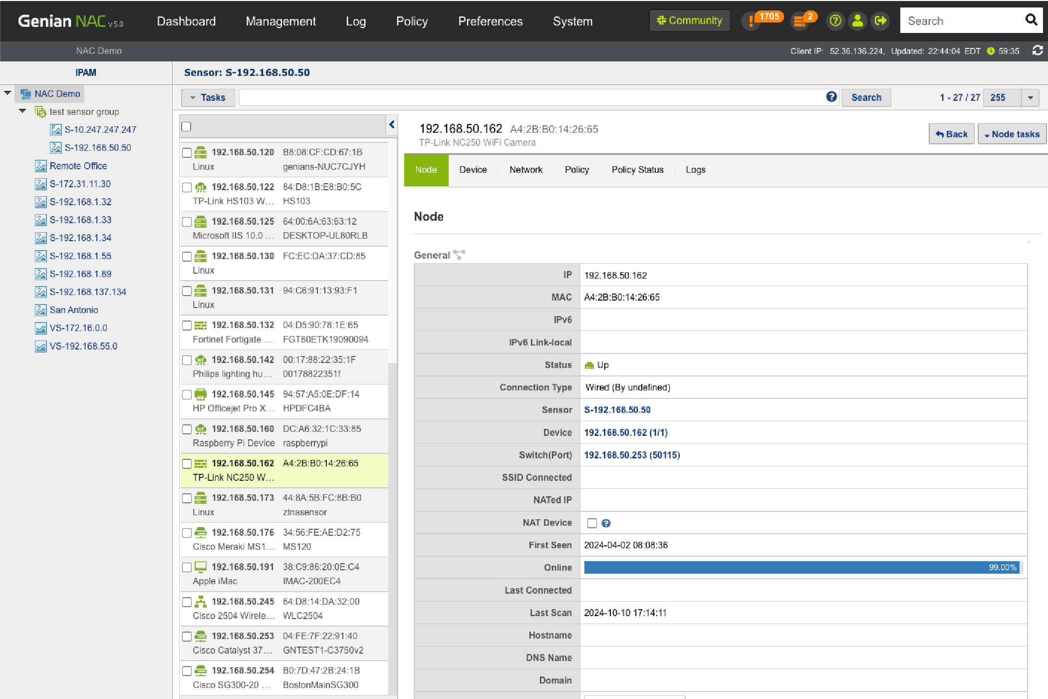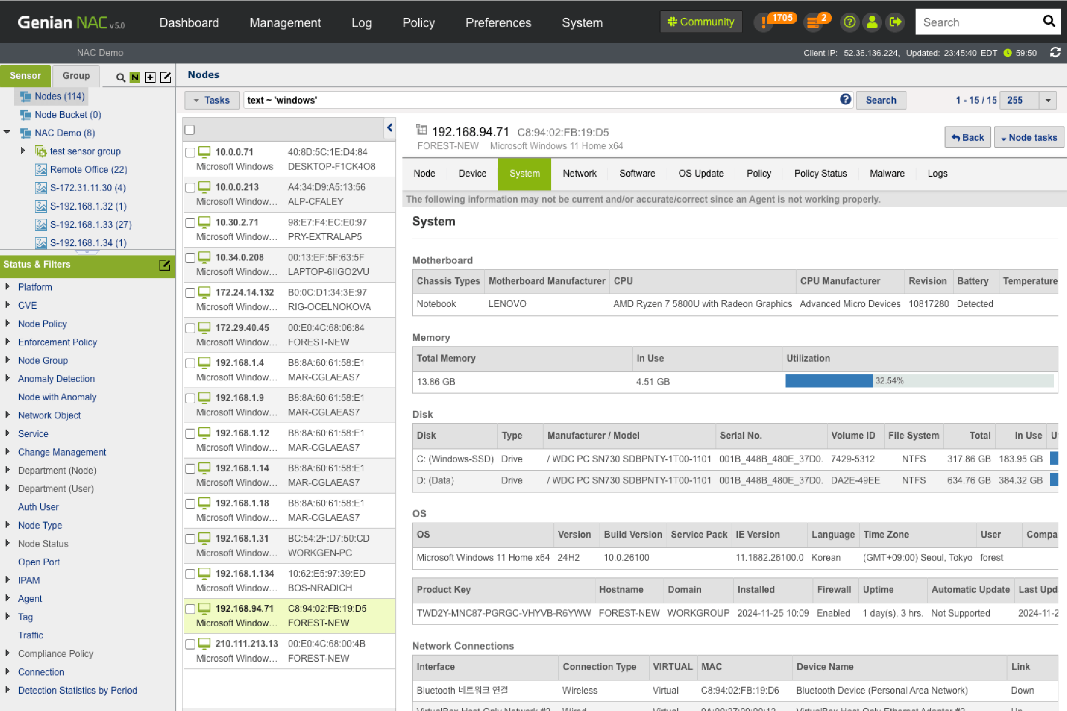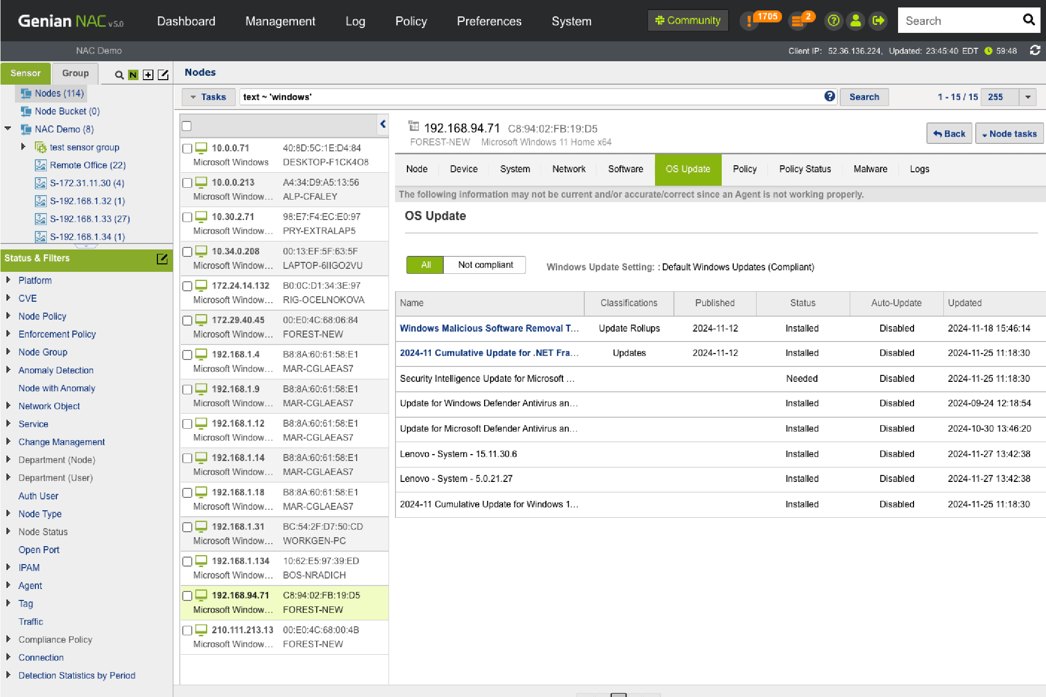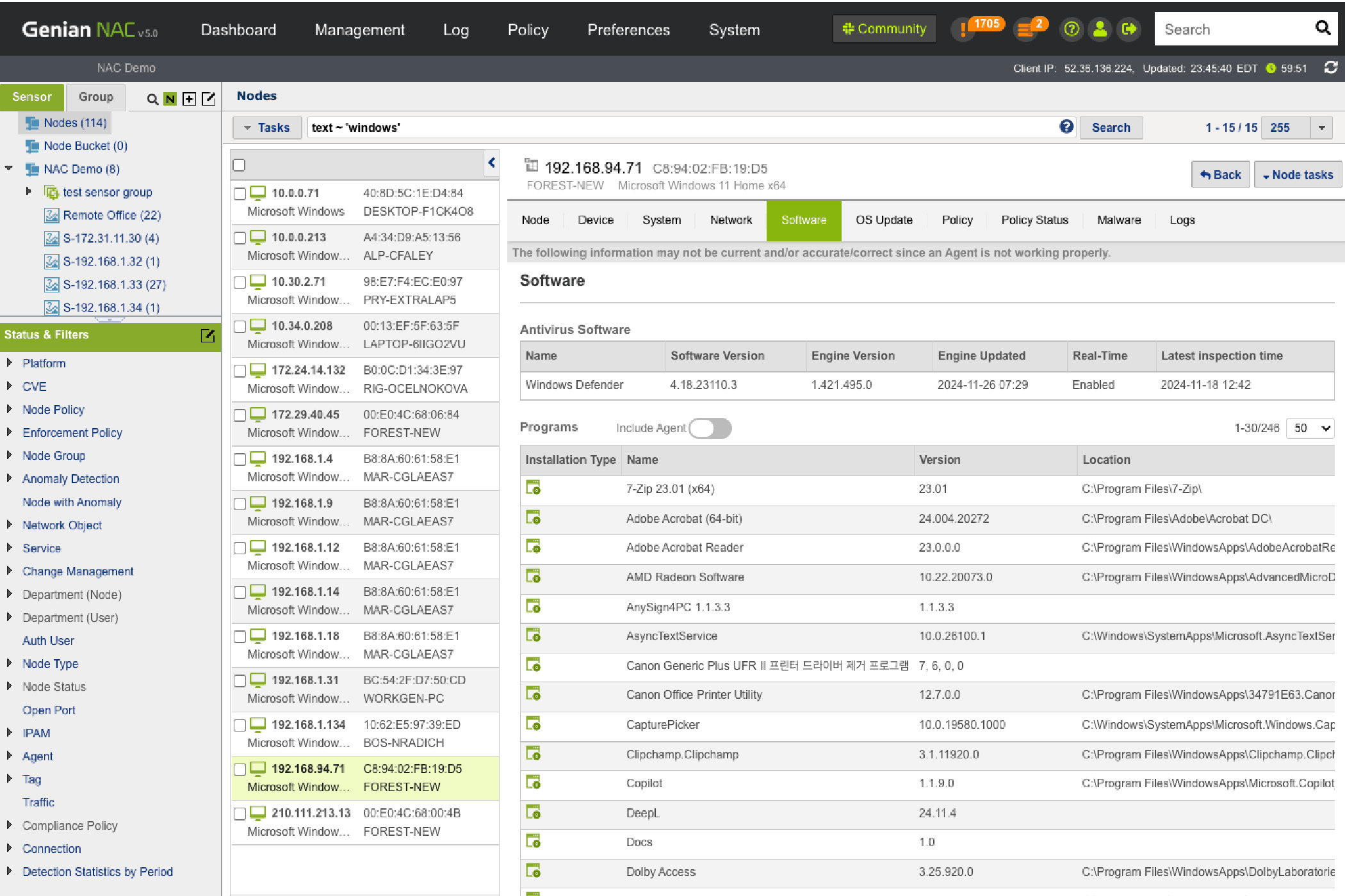 Establish security policies based on Node info collected by Network Sensors and Agents.