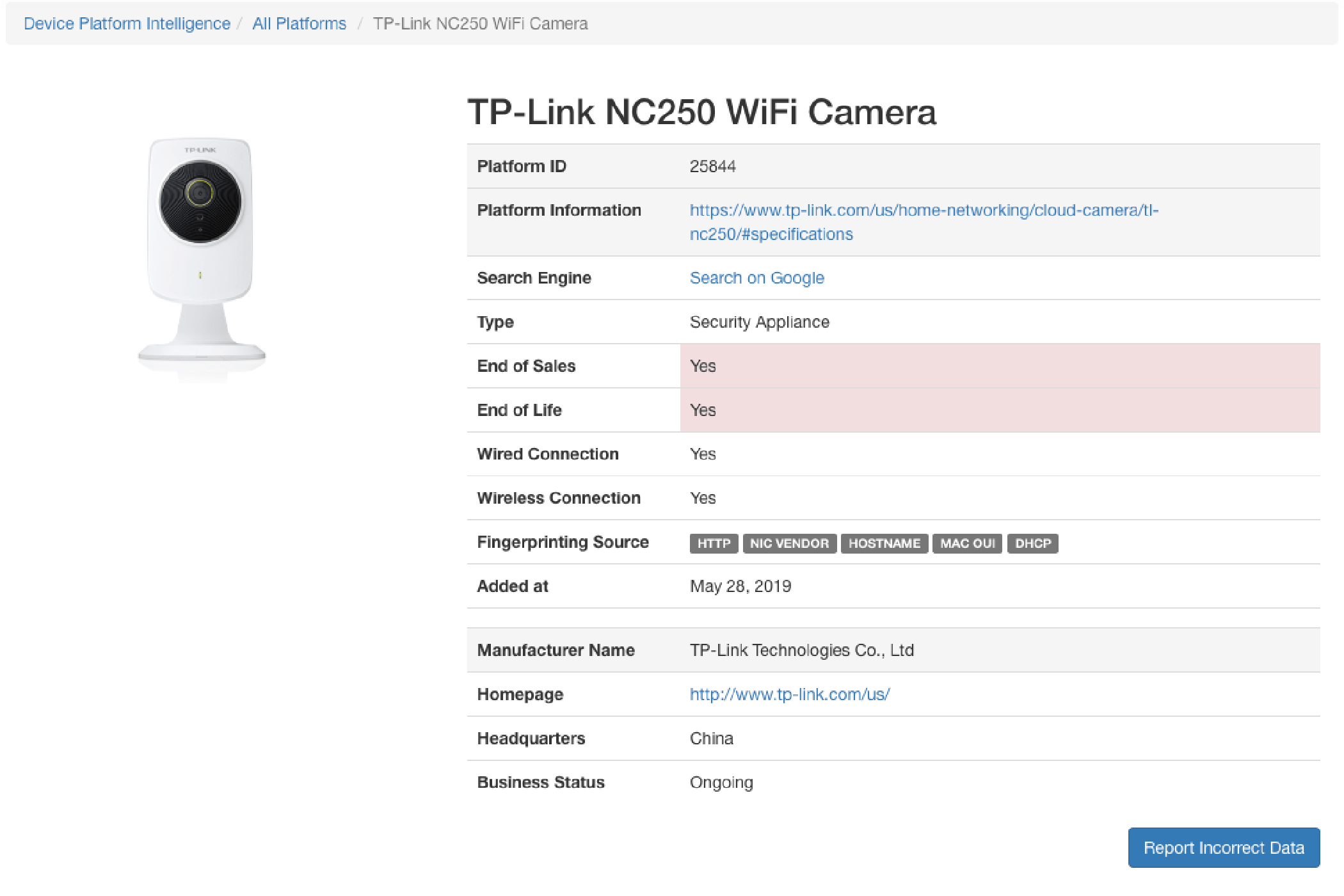 • The name of Device Platform consists of manufacturer, device name, model number (Integrated with the Common Platform Enumeration (CPE) dictionary)