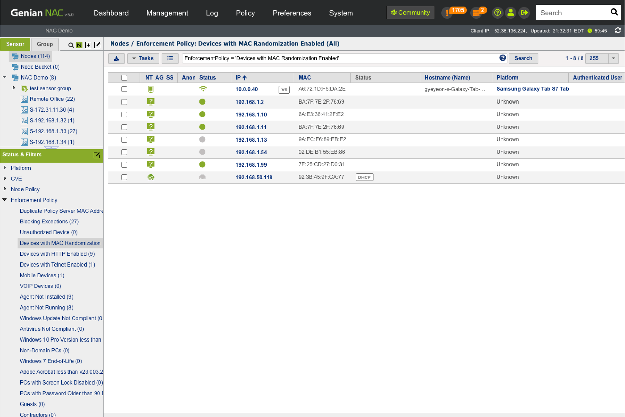 • MAC/IP Cloning Detection