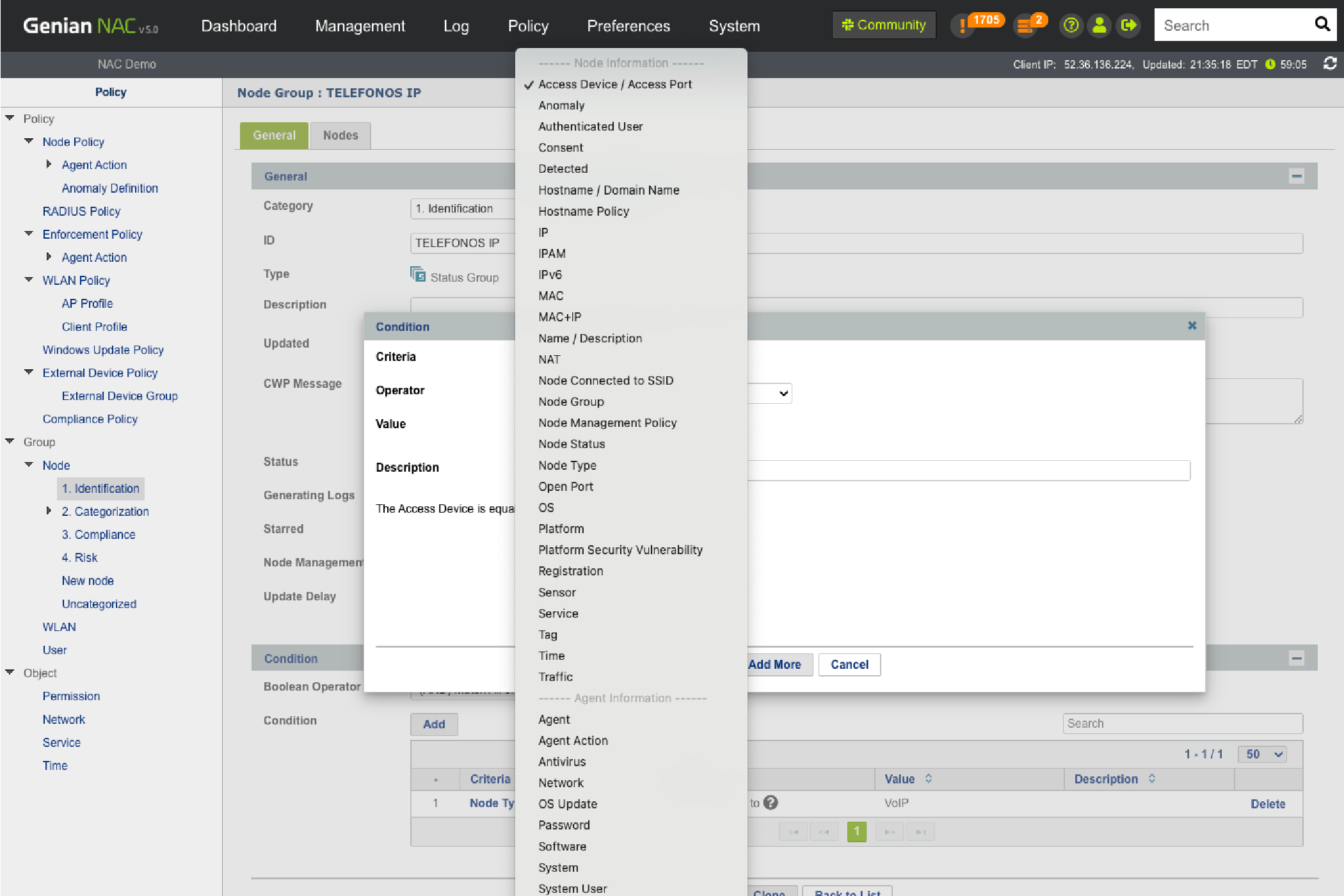 Collect Node Information from network and enforce access control polices.