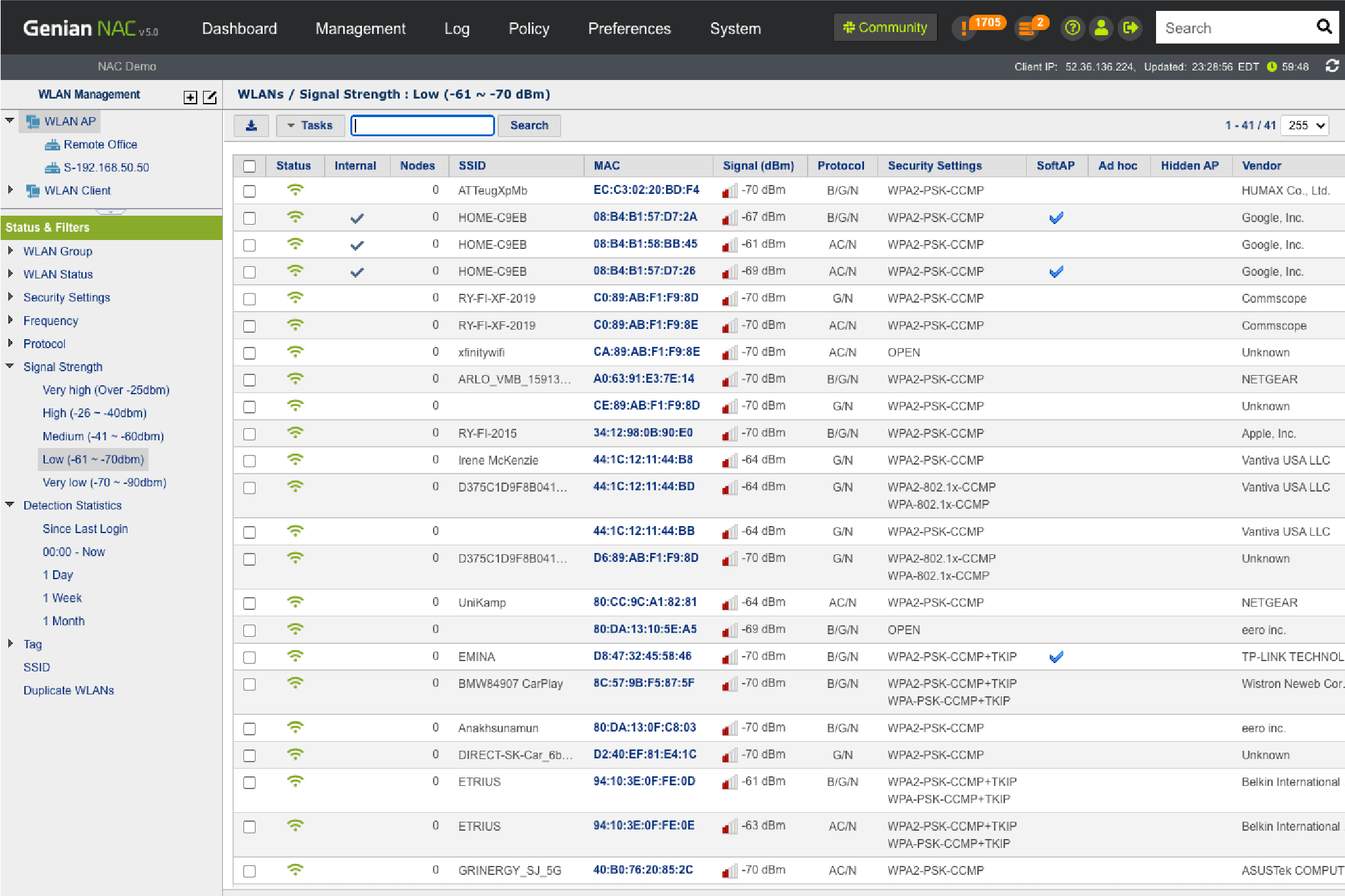 • Identify who is accessing valid (enterprise-owned) APs, neighbor APs, or rogue APs