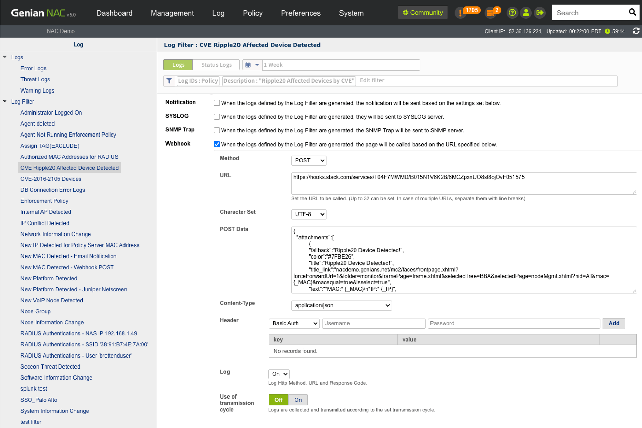 • Integration: Firewall, Switch port shutdown (SNMP,Webhook)